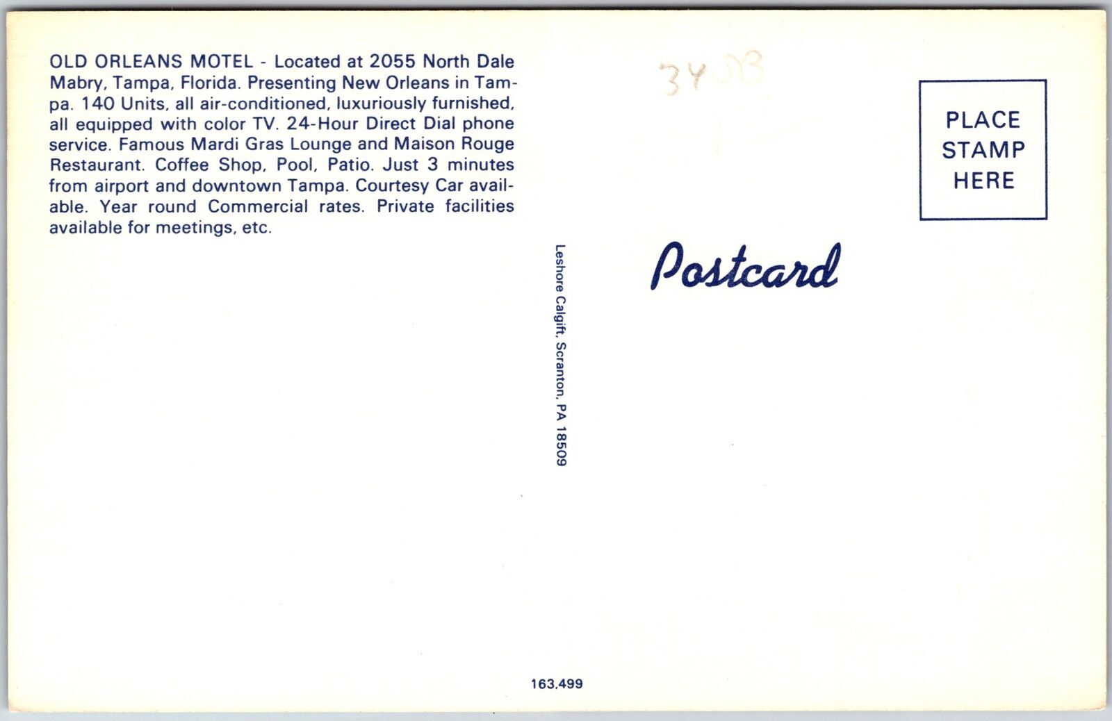 Old orleans motel north dale mabry tampa florida rooms & swimming pool postcard