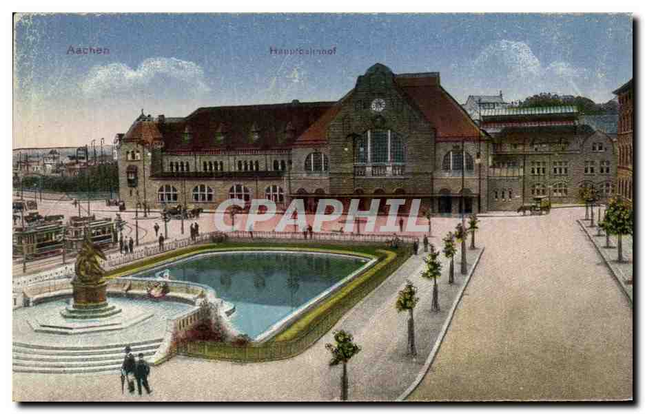 Old Postcard Aachen Hauptbahnhof