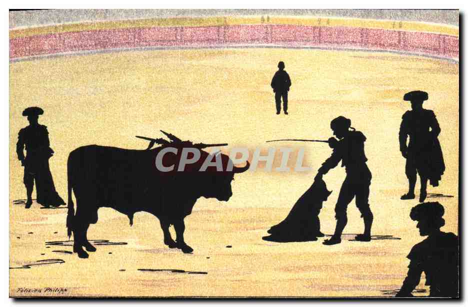 Old Postcard Against the light Bullfight Taurus