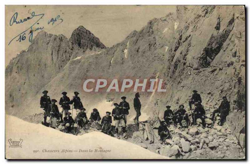 Old Postcard Alpine Hunters in the mountains Army
