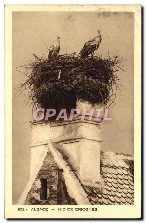 Old Postcard Alsace Storks Nest