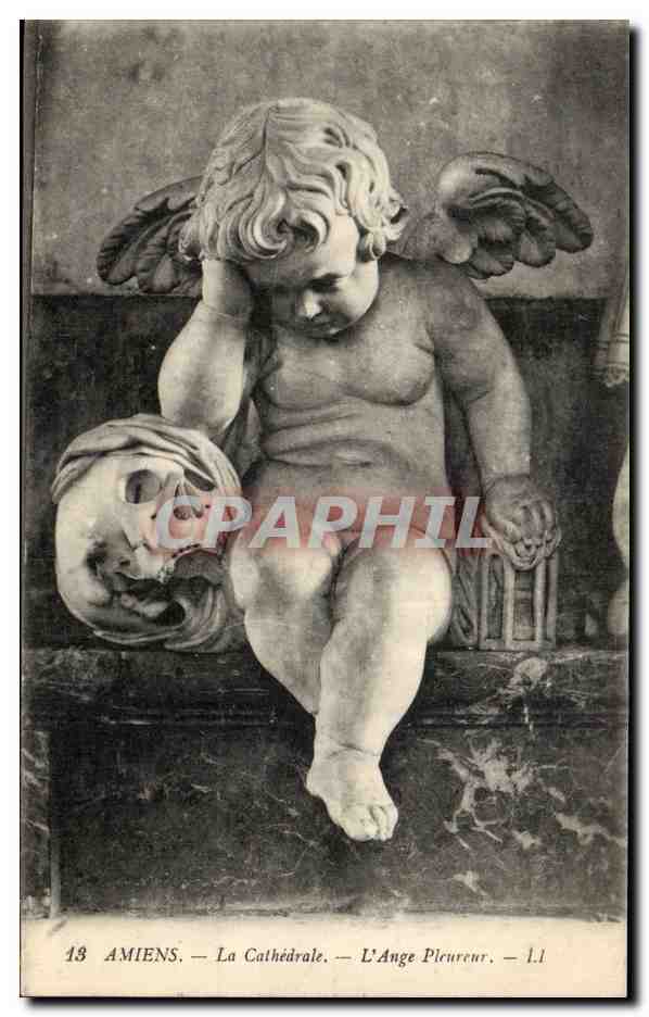Old Postcard Amiens Cathedral Angel Weeping Angel