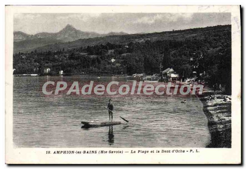 Old Postcard Amphion Les Bains Beach And Dent D'Oche