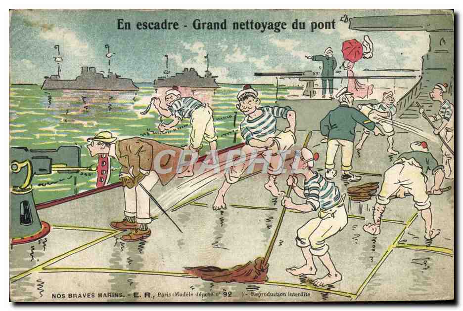 Old Postcard Army squadron in Grand deck cleaning