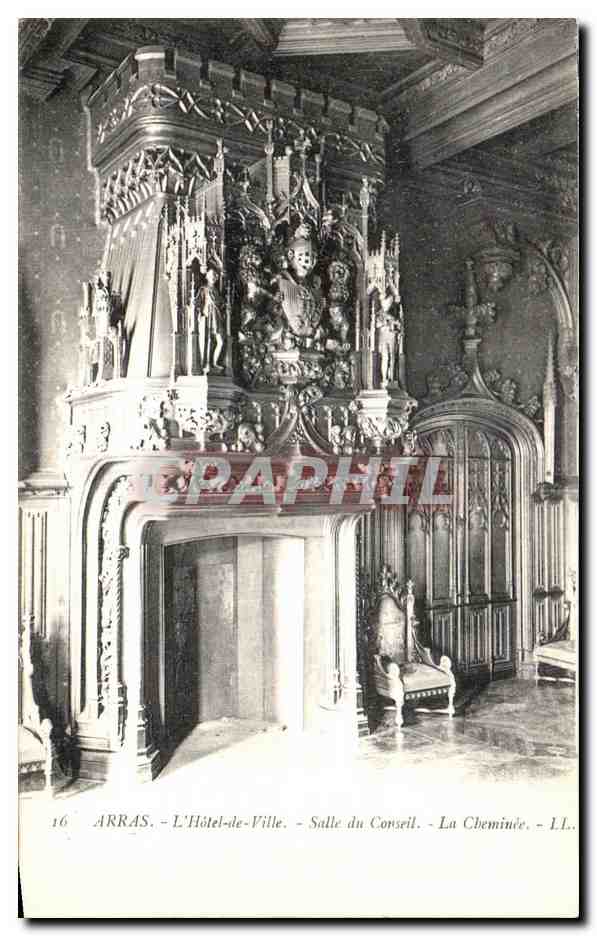 Old Postcard Arras Town Hall Council Room