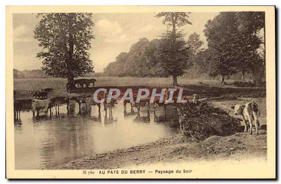 Old Postcard Au Pays Du Berry evening landscape Cows