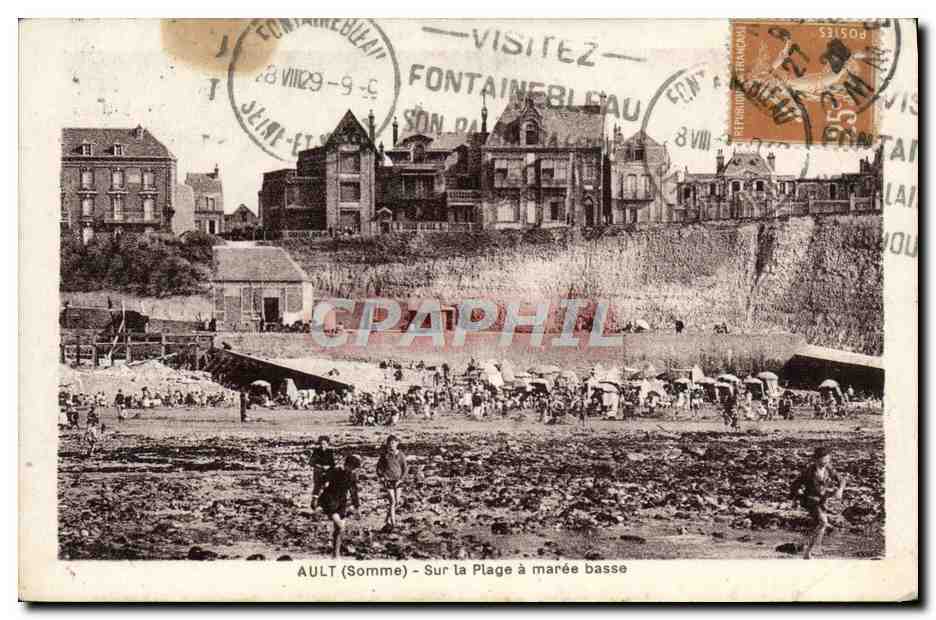 Old Postcard Ault On The Beach A Maree Basse