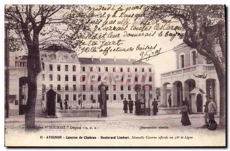 Old Postcard Avignon Army barracks Chabran Boulevard Limbert New Fire AFFECTE...