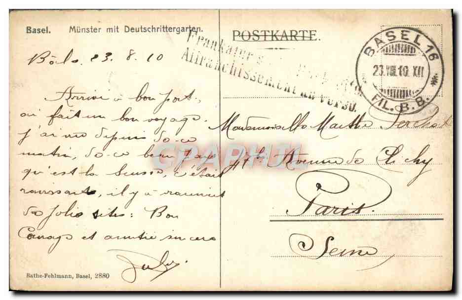 Old Postcard Basel Munster put Deutschrittergaten