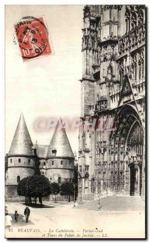 Old Postcard Beauvais Cathedral and South Gate Tours Courthouse