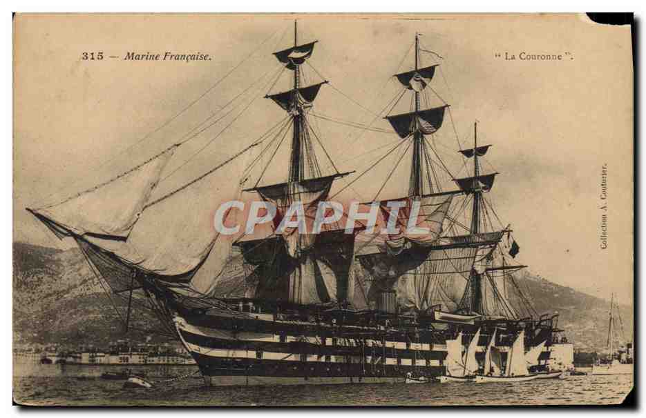 Old Postcard Boat French Navy Crown