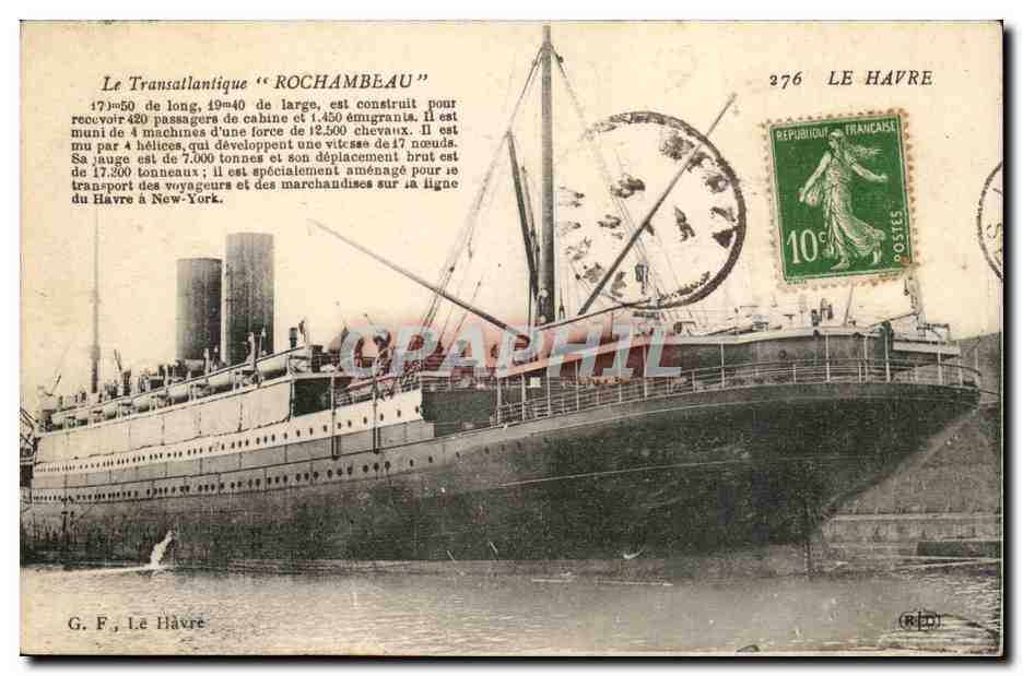 Old Postcard Boat Le Havre Ship Transatlantic Rochambeau