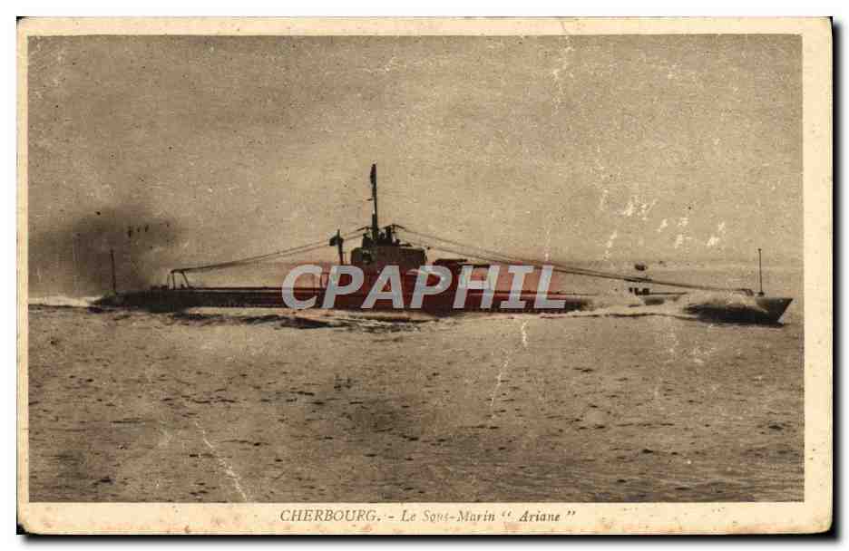Old Postcard Boat War Cherbourg Ariane Submarine