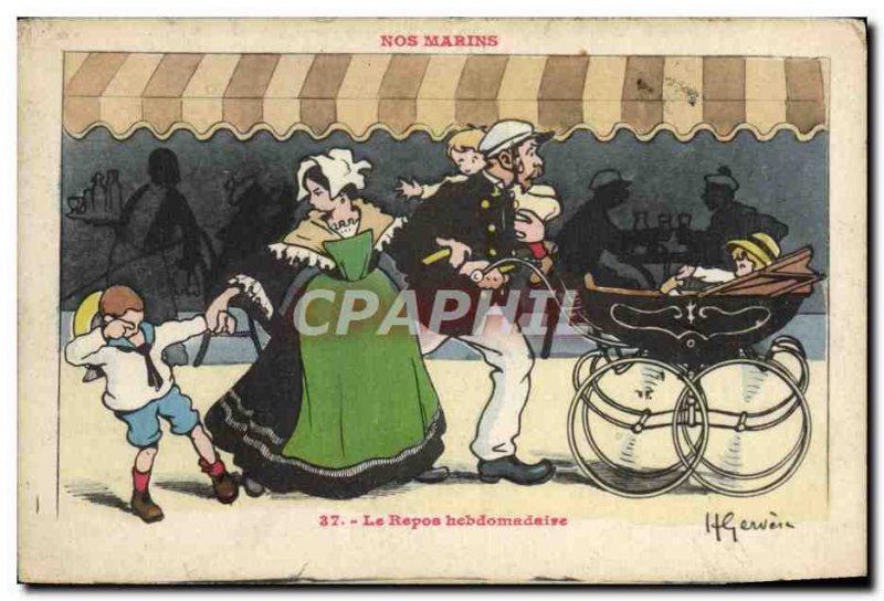 Old Postcard Boat War Sailors Illustrator Gervese Weekly rest
