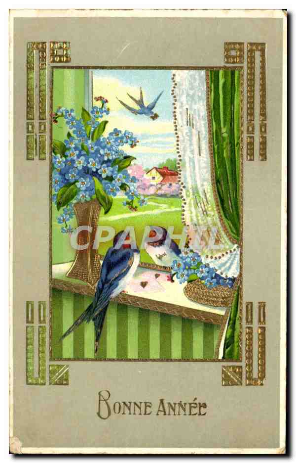 Old Postcard Bonne Annee Birds