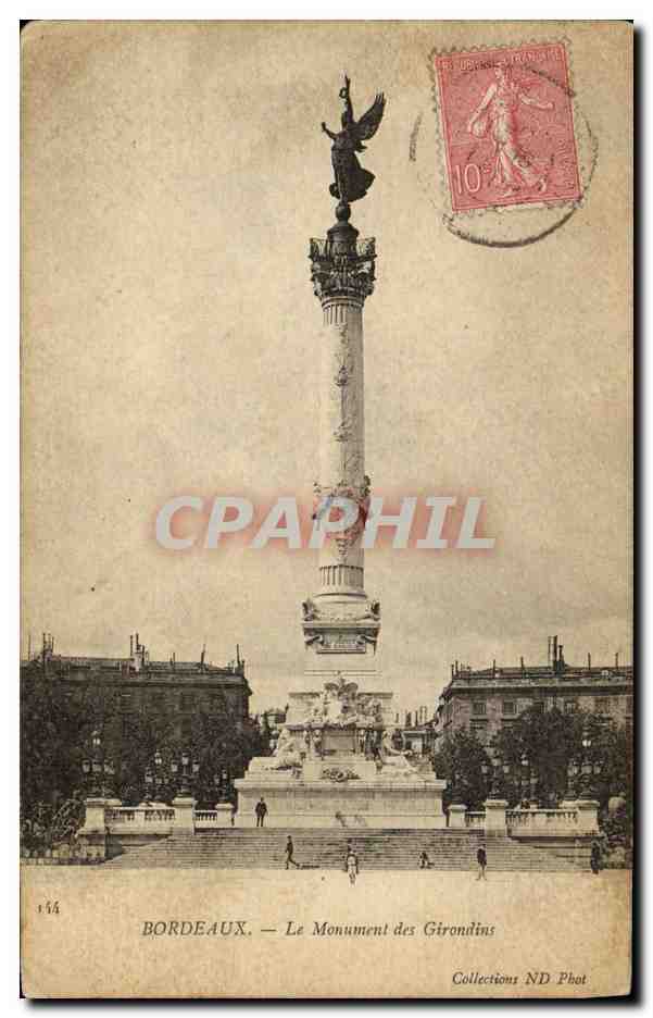 Old Postcard Bordeaux Girondins Monument