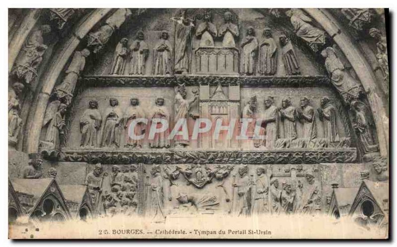 Old Postcard Bourges Cathedral Eardrum Portal St Ursin