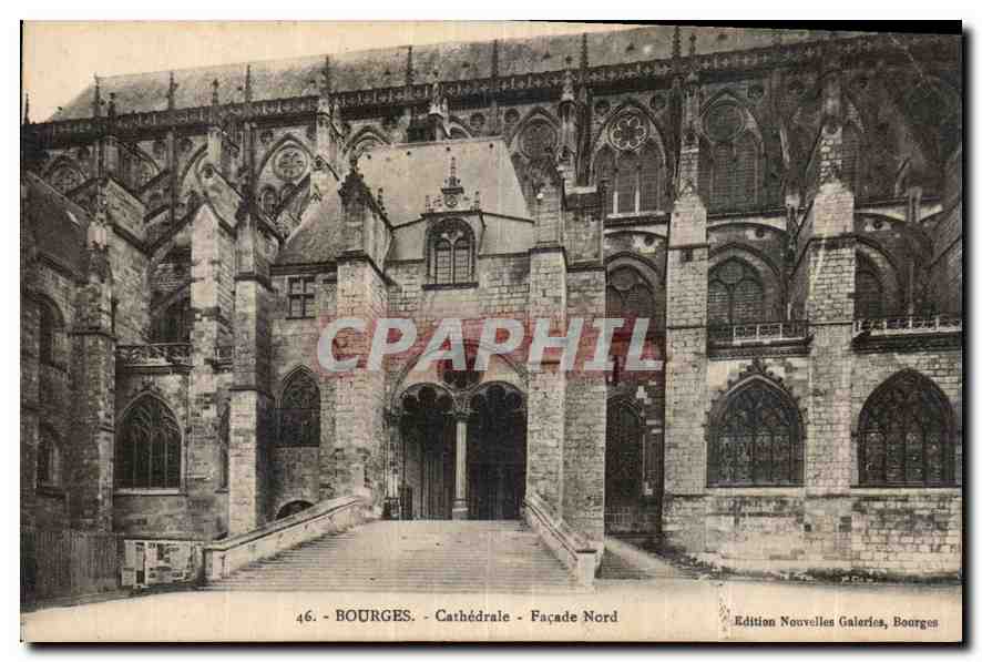 Old Postcard Bourges Cathedral Facade North