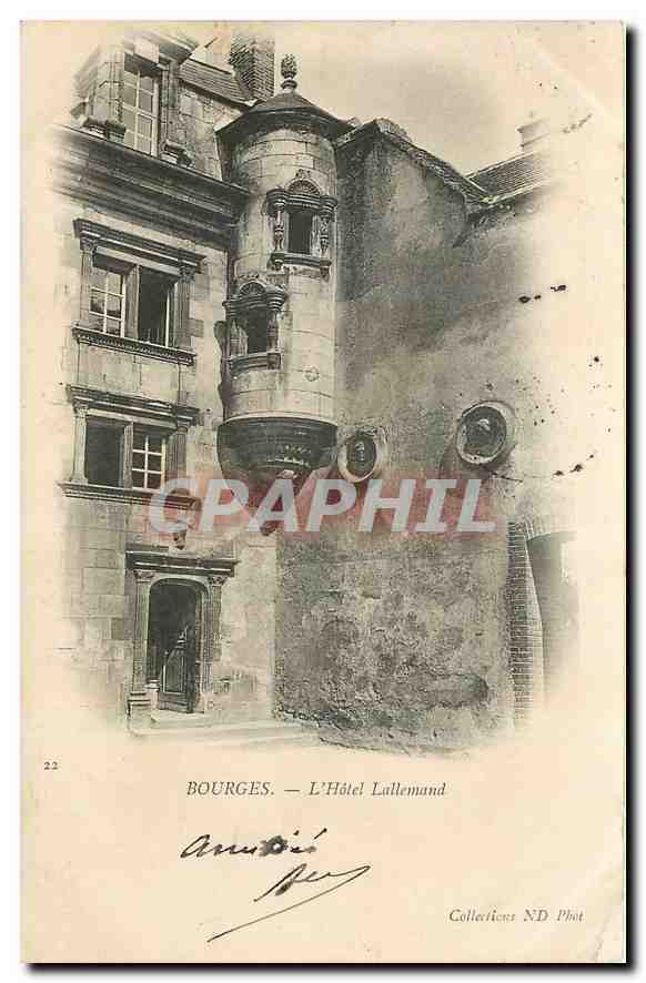 Old Postcard Bourges Hotel Lallemand