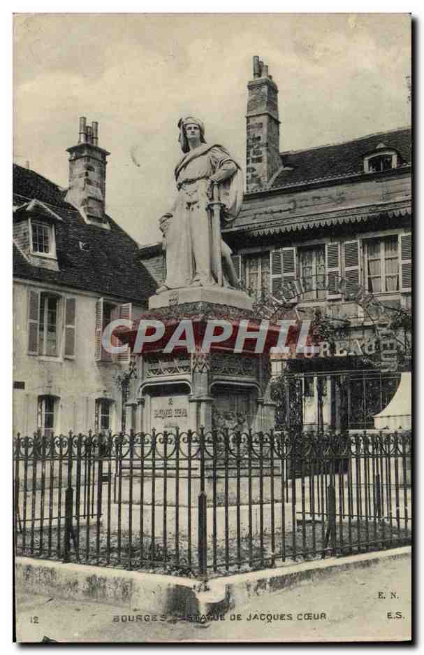 Old Postcard Bourges Statue Jacques Coeur