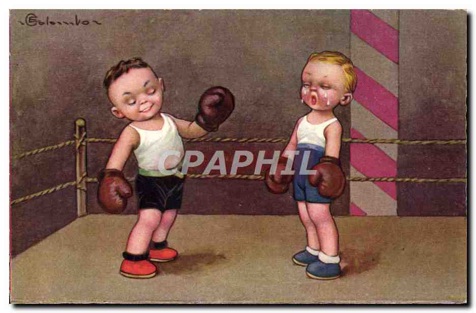 Old Postcard Boxing Kids illustrator