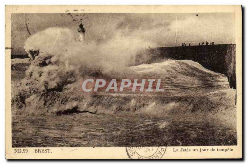Old Postcard Brest La Jetee one day storm