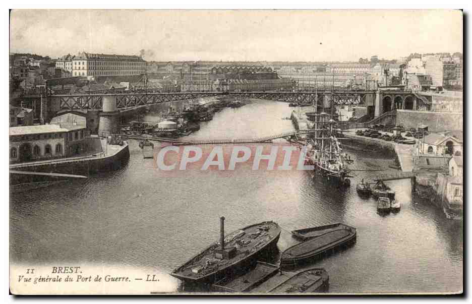 Old Postcard Brest Vue Generale Port War Ships