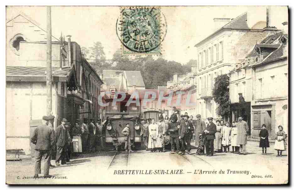 Old Postcard Bretteville sur Laize The Arrival Tramway TOP
