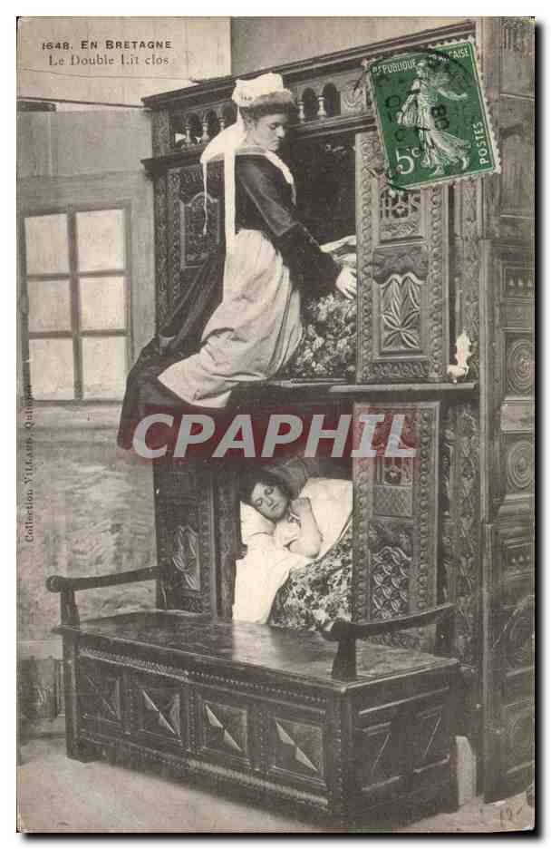 Old Postcard Brittany Folklore Beds Clos The double box bed