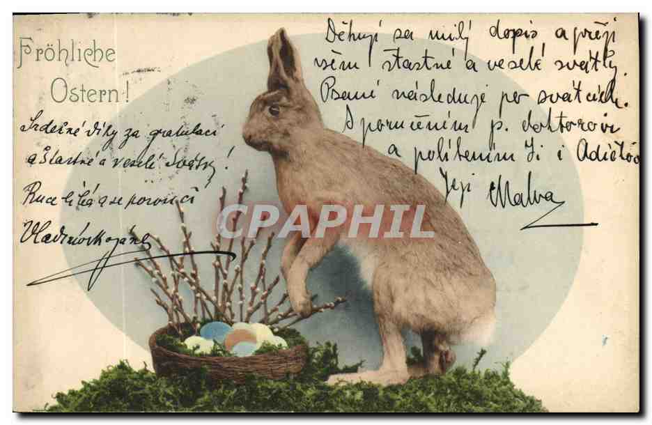 Old Postcard Bunny Rabbit Eggs