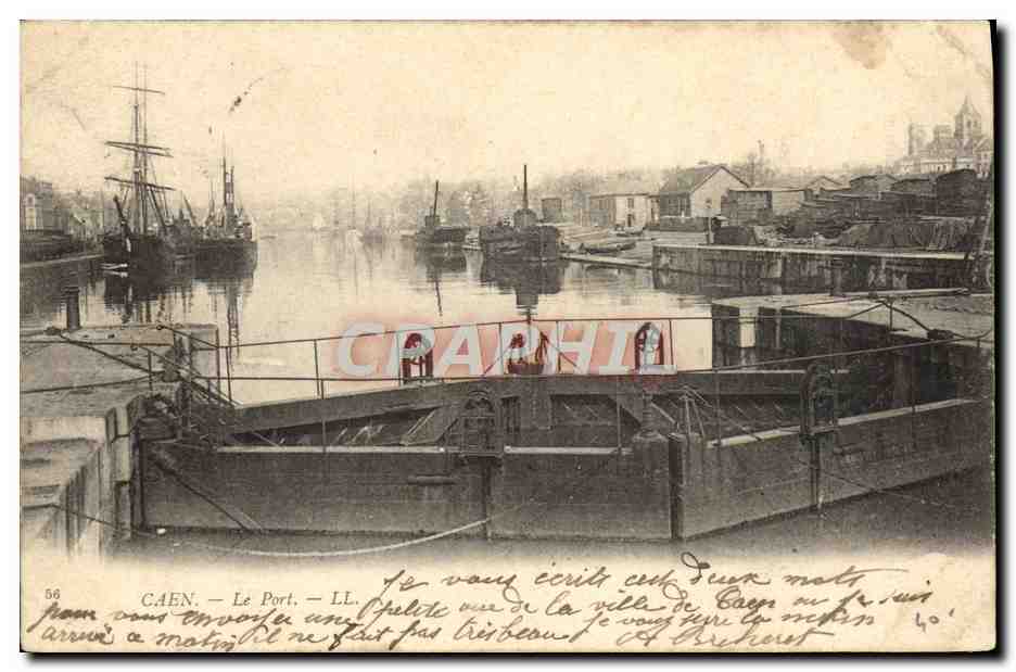 Old Postcard Caen Port Boat