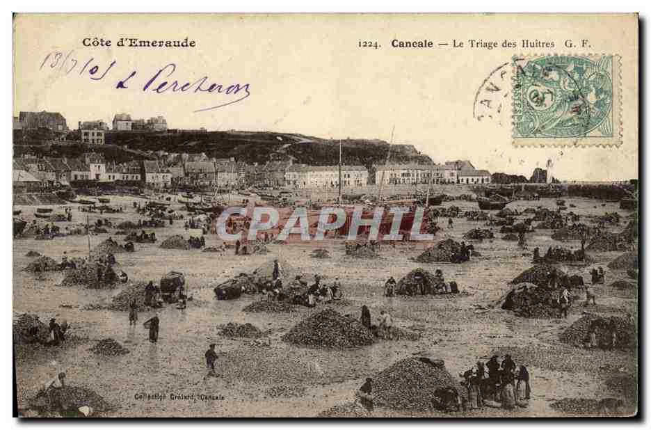 Old Postcard Cancale Sorting Oysters oyster farming