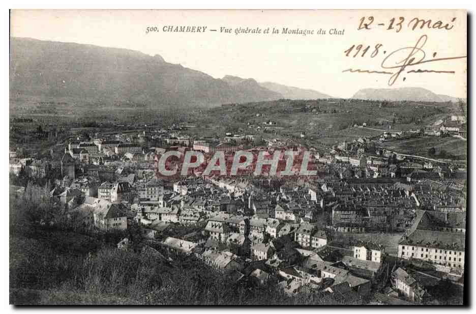 Old Postcard Chambery General View and Mountain Cat