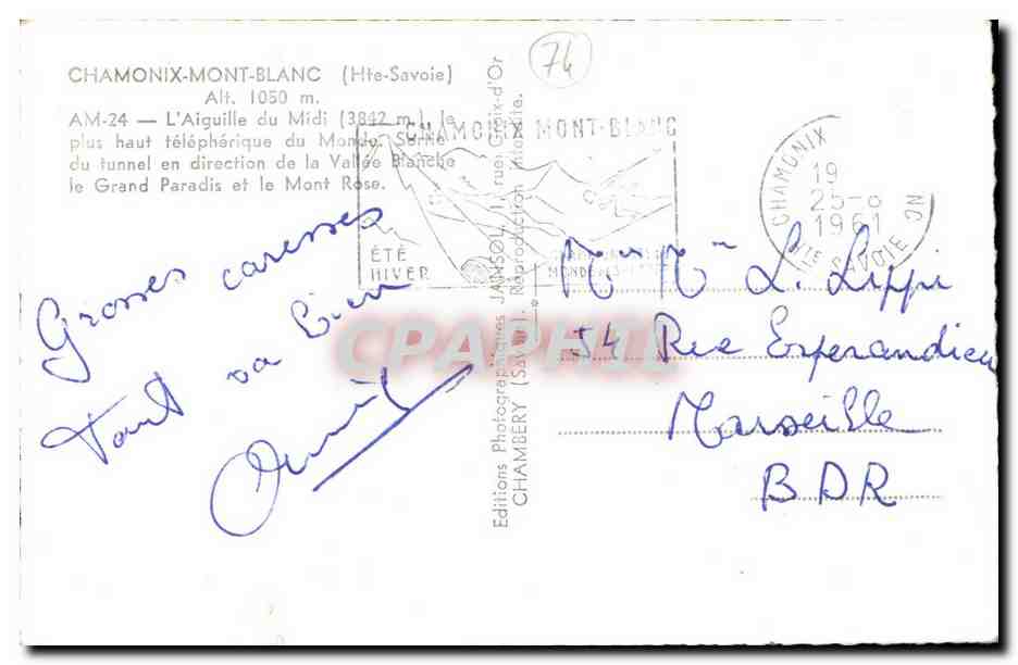 Old Postcard Chamonix L & # 39Aiguille du Midi Cable car
