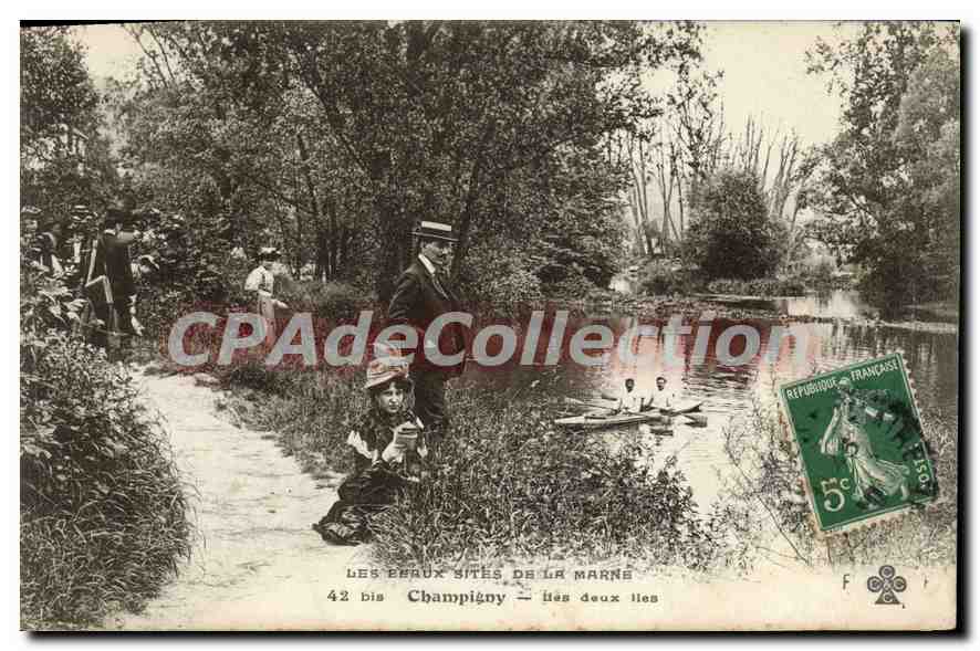 Old Postcard Champigny Both islands