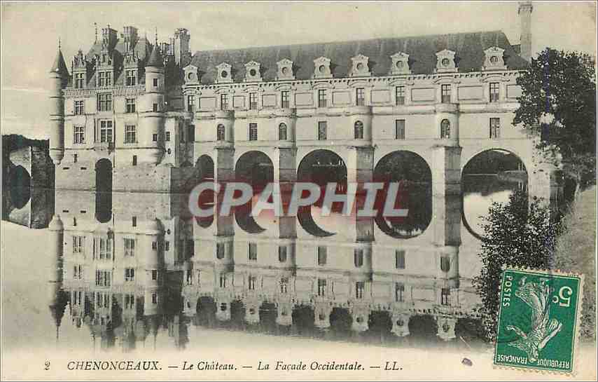 Old Postcard Chateau Chenonceau The West Facade