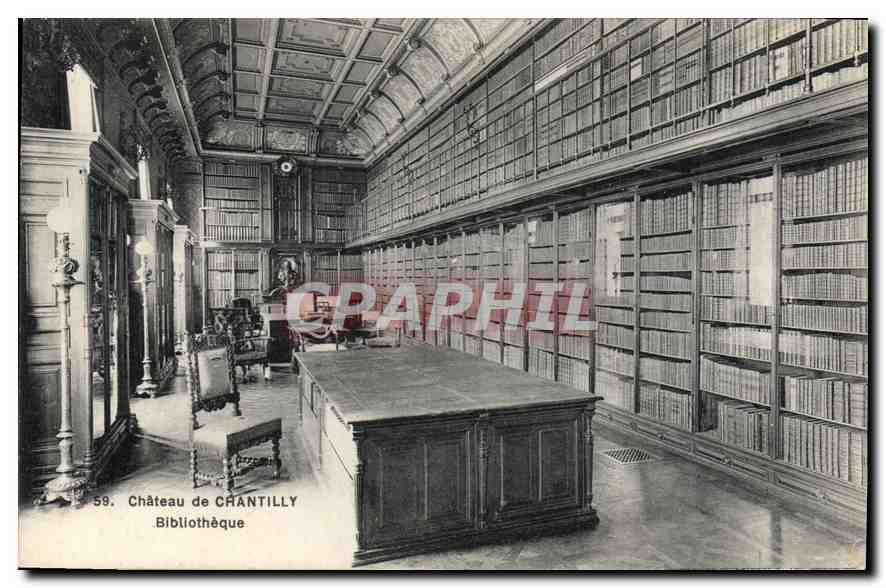 Old Postcard Chateau de Chantilly Library