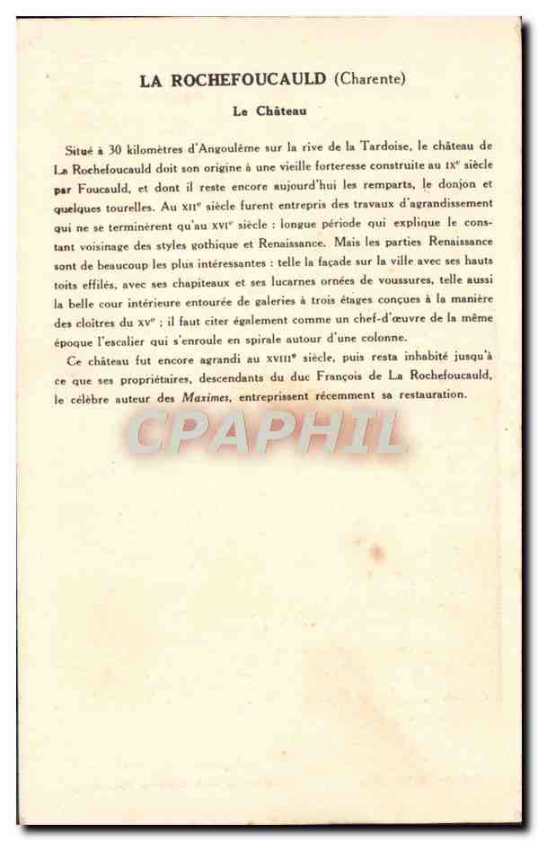 Old Postcard Chateau La Rochefoucauld