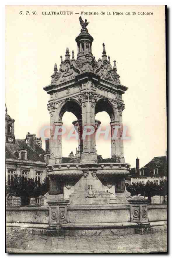 Old Postcard Chateaudun Fountain Square October 18