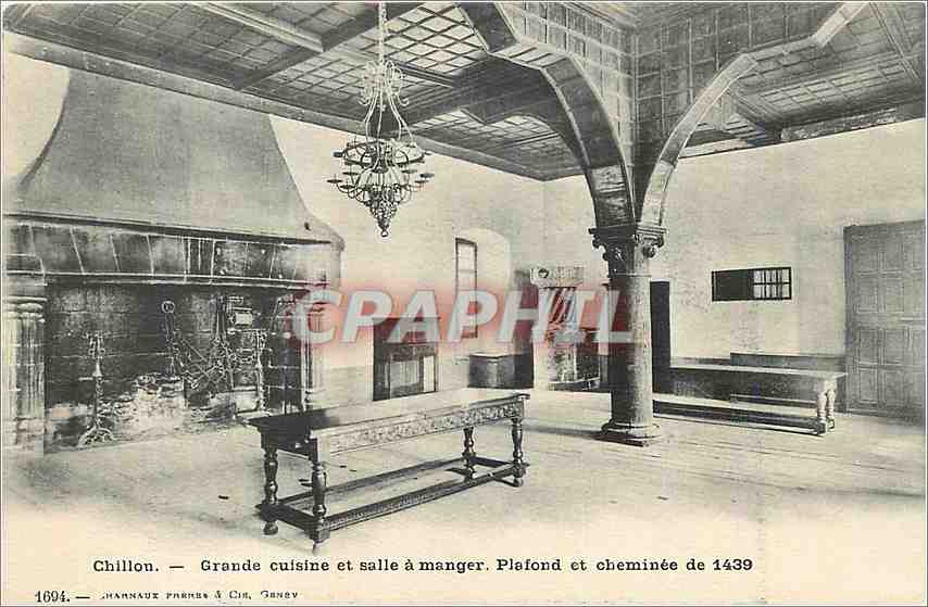 Old Postcard Chillon Large Kitchen and Dining Room Ceiling and Fireplace 1439