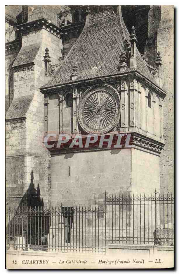 Old Postcard Clock The Cathedral Chartres