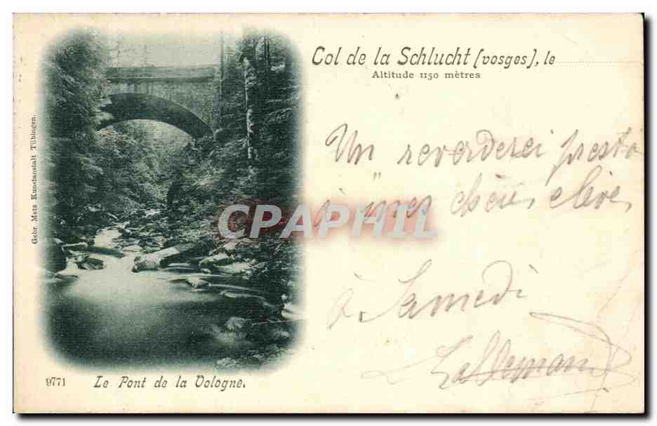 Old Postcard Col de la Schlucht The Bridge Vologne Map 1898