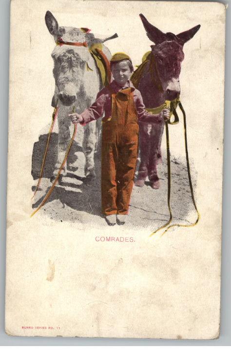 Old Postcard-Comrades..Little Boy With Mules/Donkeys