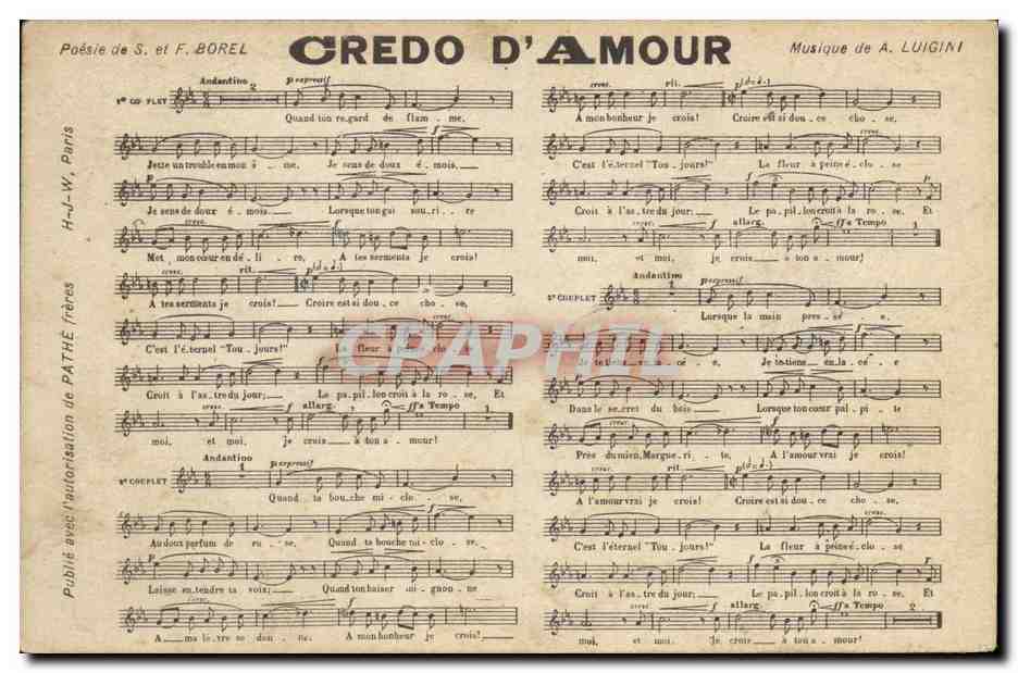 Old Postcard Creed d & # 39amour Borel Luigini