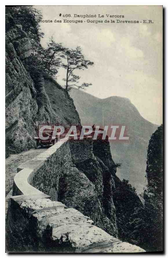 Old Postcard Dauphine Vercors road Ecouges Gorges Drevenne Automotive