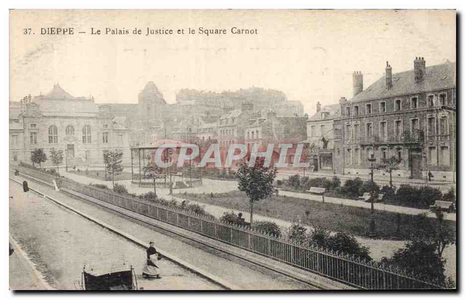 Old Postcard Dieppe Courthouse and Square Carnot