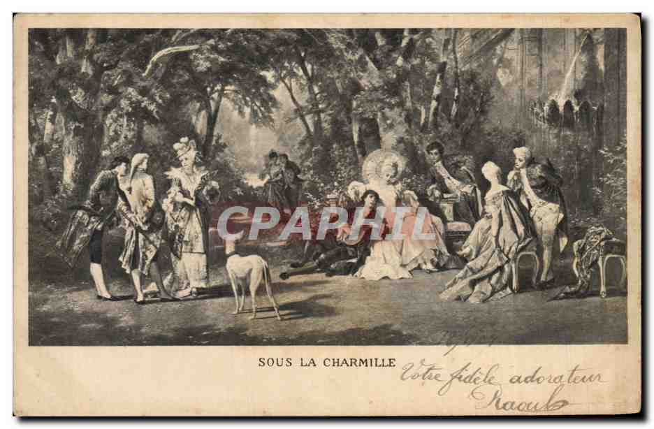 Old Postcard Dog Dogs Greyhound Under the arbor