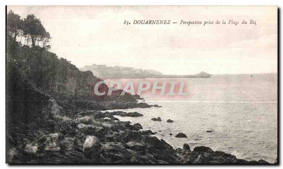 Old Postcard Douarnenez Perspective taking the Rice beach