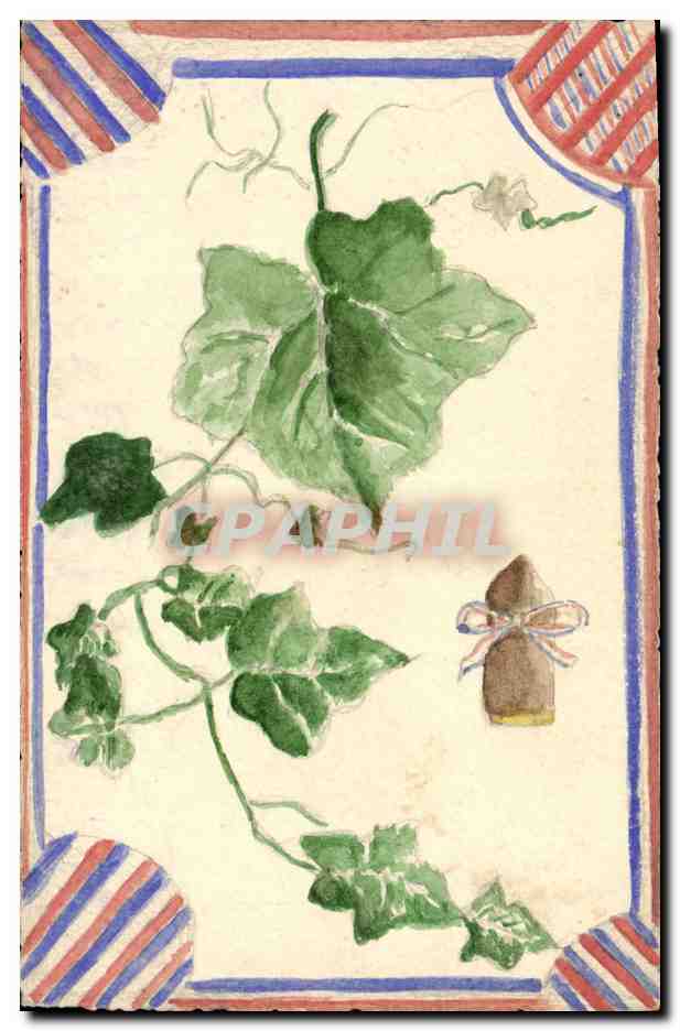 Old Postcard Drawing a hand Vine Flags
