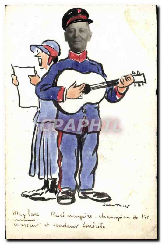 Old Postcard (drawing hand) Man has the guitar